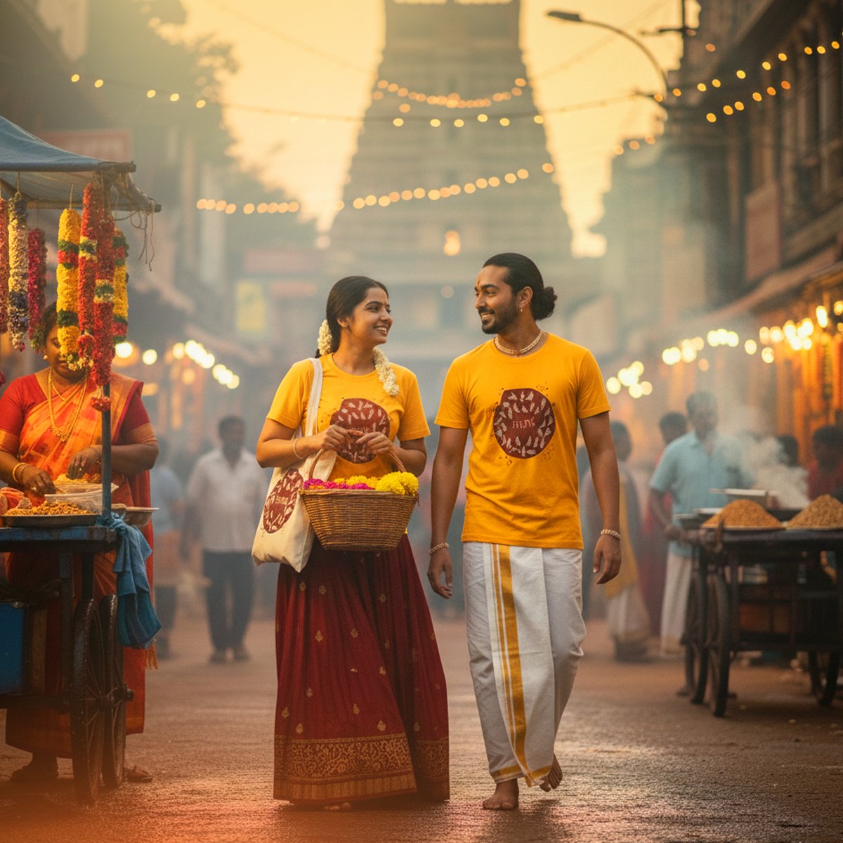 Experience everyday comfort wrapped in the beauty of tradition with our Kadhambam T-Shirts. Each piece is consciously crafted to reflect the grace of our cultural heritage while blending effortlessly with modern style. Designed to match your vibe, these tees bring together heritage, art, and comfort in perfect harmony.