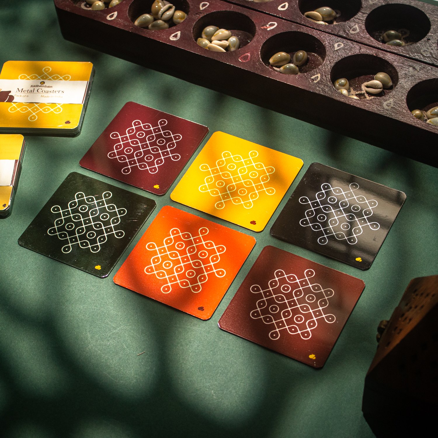 Bring culture to your table with Kadhambam Original Illustrated Metal Coasters by Kadhambam — thoughtfully designed for traditional living in a modern world.
