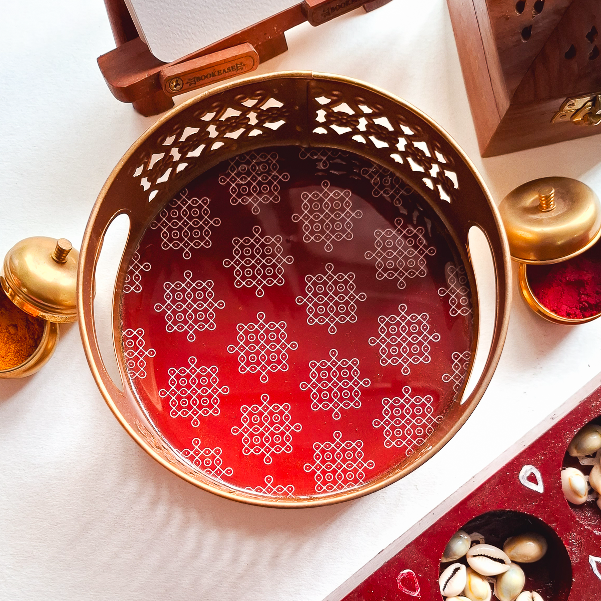 A beautifully crafted traditional tray for pooja, décor, or gifting — where devotion meets design.