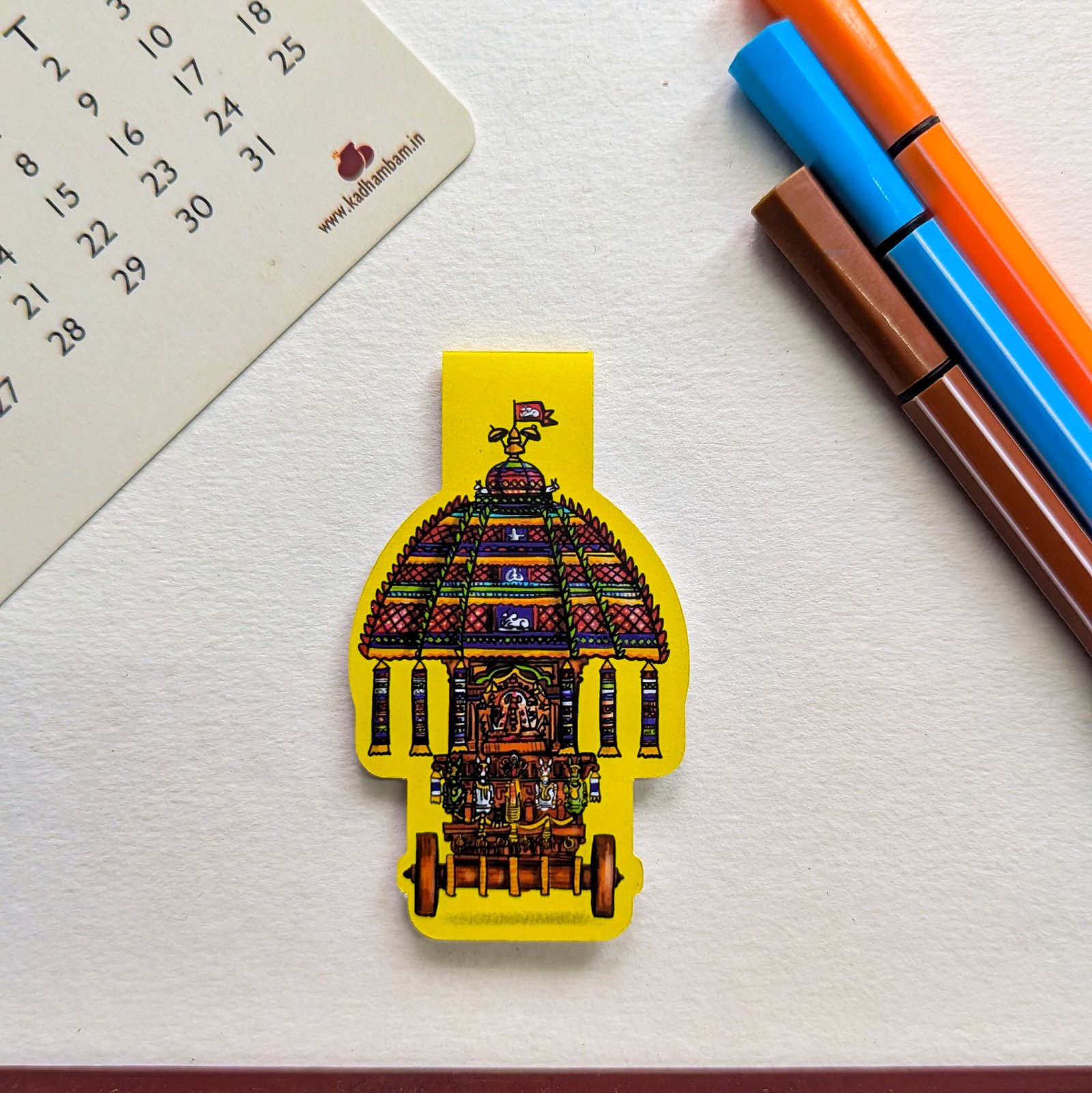 At Kadhambam, each magnetic bookmark is a tribute to both artistry and heritage. These bookmarks showcase exclusive illustrations that embody cultural grace and beauty, lovingly created by local artisans. Kadhambam Magnetic Bookmarks are more than just page-holders?they add a sophisticated and thoughtful touch to your reading experience, infusing your books, journals, and planners with artistry that reflects the charm and elegance of cultural heritage.